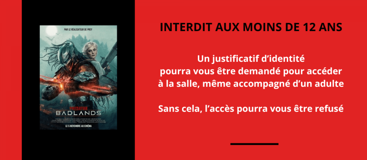 Interdit aux -12ans, un justificatif vous sera demandé pour accéder aux salles.