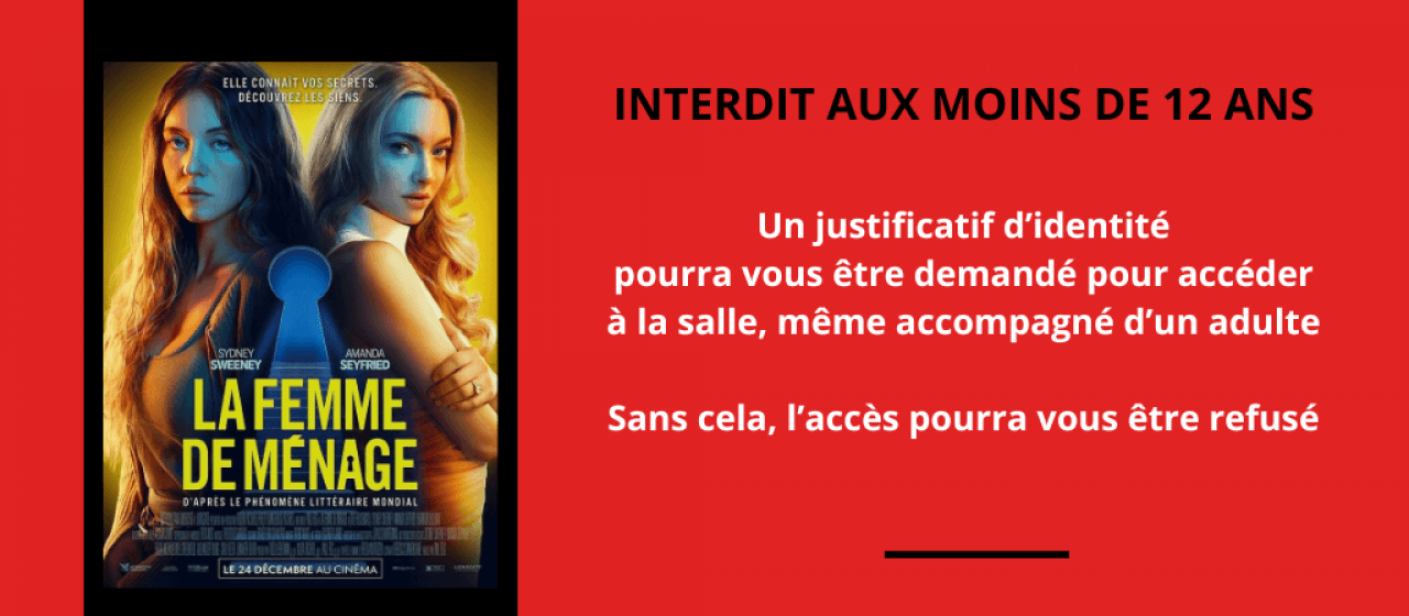 Interdit aux -12ans, un justificatif d'identité vous sera demandé pour accéder aux salles.